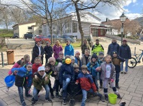 Am letzten Schultag vor den Osterferien zogen die Kinder der Fuchsklasse in kleinen Gruppen durchs Dorf. Ausgestattet waren sie mit Bollerwagen, Eimern, Müllsäcken und Müllzangen. Ein gemeinsames Ziel stand im Mittelpunkt: Eisental von unachtsam weggeworfenem Müll zu befreien. Nach etwa einer Stunde Sammelzeit kam einiges an Unrat zusammen.